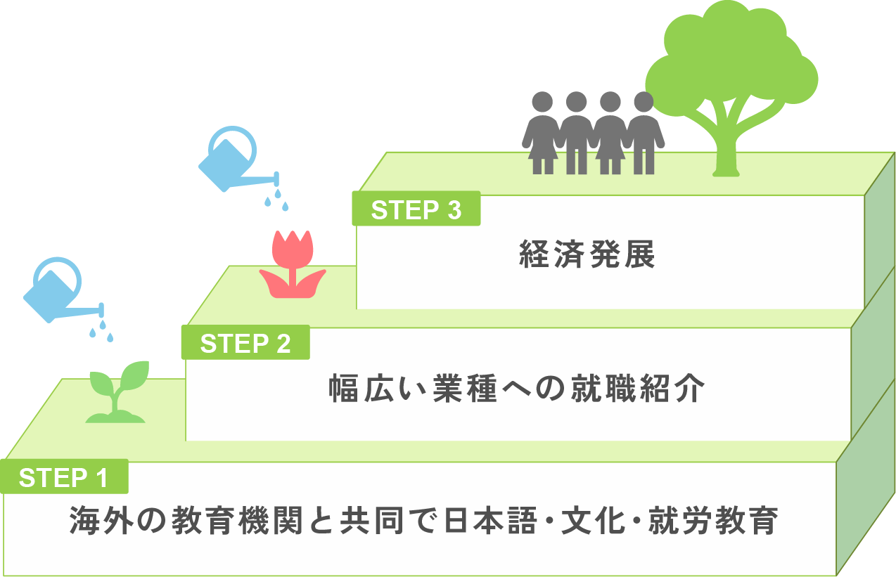 「⼈を受け⼊れ、学び、成⻑する環境があれば、⼈は変われる」この思いを胸に、次世代につながる⽣涯教育の場を提供します。