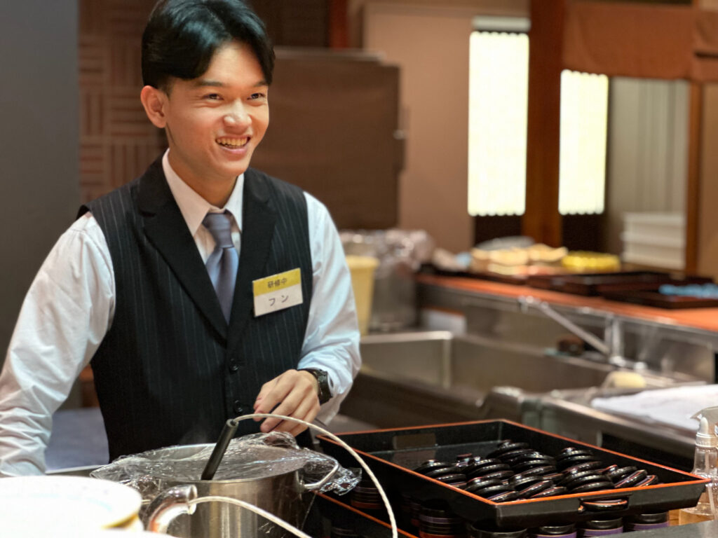 現在、ホテルの客室清掃部門で実習しています。職場はフレンドリーでプロフェッショナルな環境です。日本語がまだ完璧でなくても、皆さんが親切にサポートしてくださり、半月で業務を覚え、語彙力も向上しました。