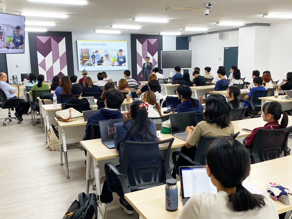 事前のオンライン日本語授業では、インターンシップ先で使う言葉だけではなく、日本人の考え方やマナー、挨拶のし方からインターンが始まるまでの流れ、ビジネス日本語やお客様の対応、キャリアデザインについても学べます。それにただ聞くのではなく、参加者とグループに分かれてディスカッションし、意見を出す練習もできました。インターンシッププログラムに参加して、だんだん自分の未来について考えるようになって、人生のデザインができるようになりました。今回のインターンシップから得られた経験を将来に生かしたいと思います。
